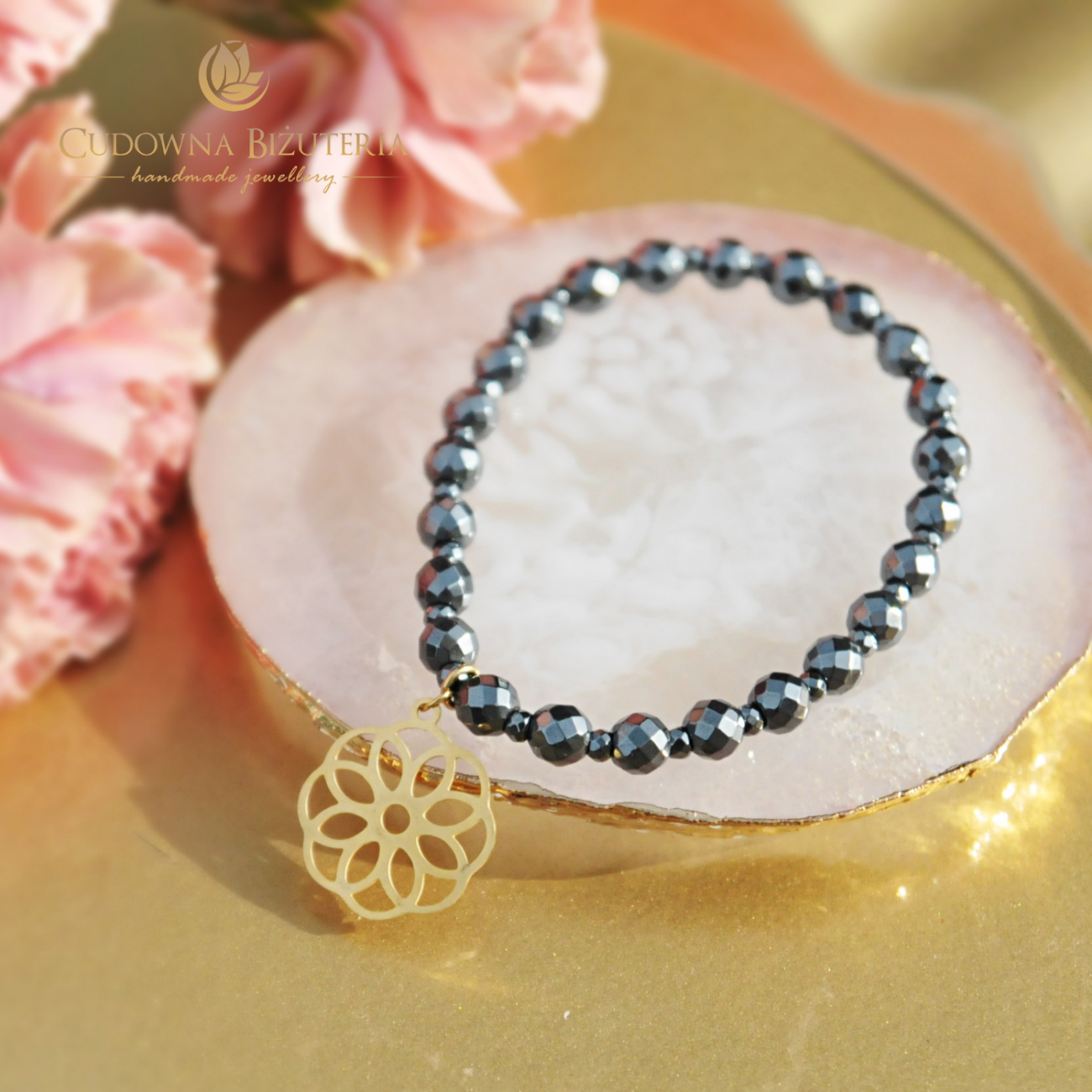 Proponujemy bransoletkę wykonaną z hematytu w kolorze grafitowym.