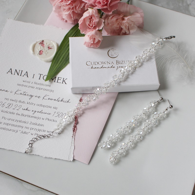 Biżuteria ślubna kryształowa BELL GOLD IV bransoletka i długie kolczyki