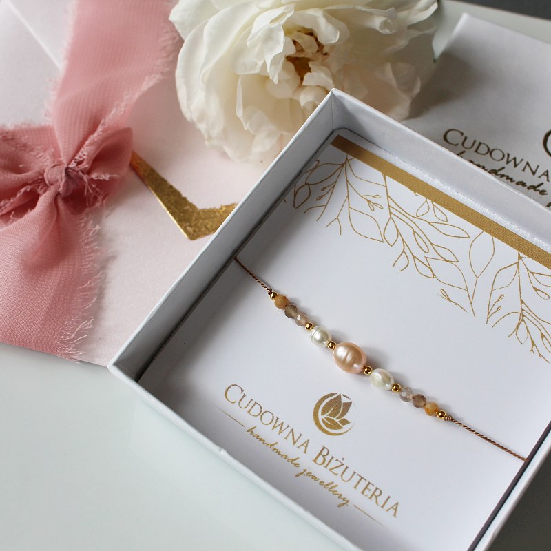Bransoletka została zbudowana na jedwabnym sznureczku w kolorze miodowym.