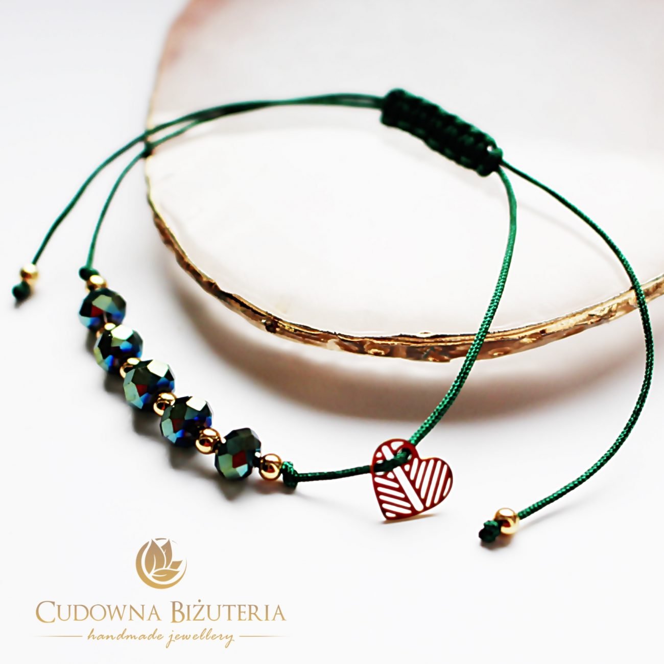 W tym ogłoszeniu zamówisz model w kolorze zielonym z metalicznymi zielonymi kryształkami. Serduszko oraz złote elementy wykończeniowe wykonane ze stali szlachetnej.
