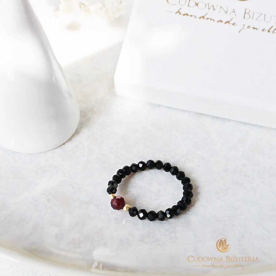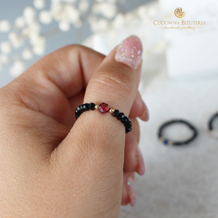 Oferujemy przepiękny pierścionek elastyczny wykonany z czarnych kryształów.