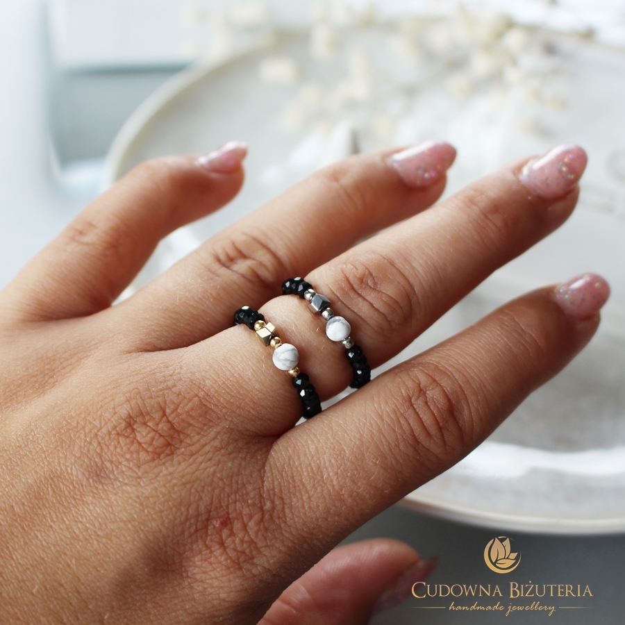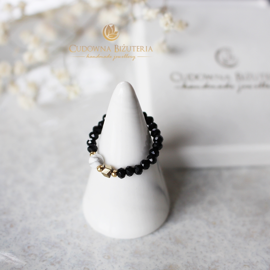 Oferujemy przepiękny pierścionek elastyczny wykonany z czarnych kryształów.