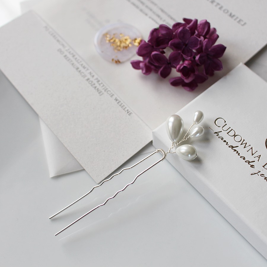 Oferuję kokówkę do włosów z perełkami w kształcie kropelek. Model subtelny, pięknie wygląda zestawienie kilku sztuk.