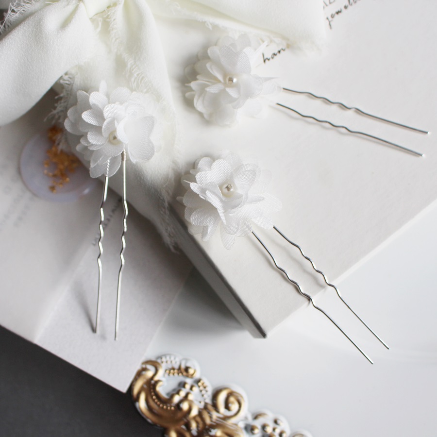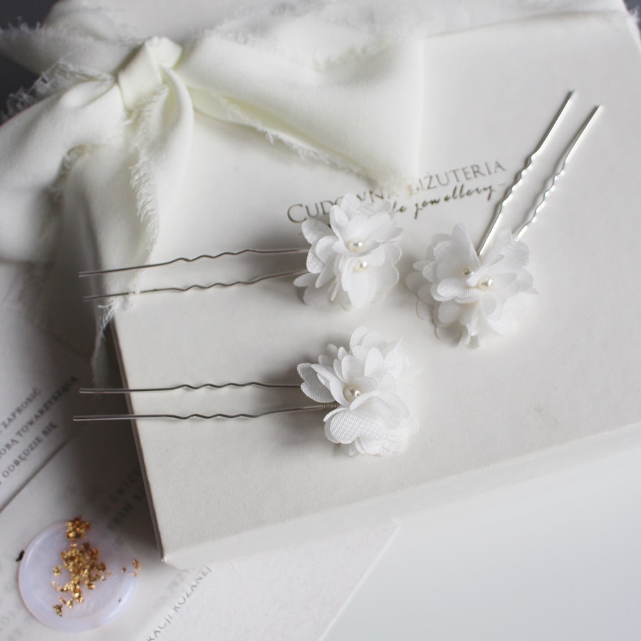 Kokówki SOFI kwiatuszki z perełkami zestaw trzech sztuk wersja srebrna