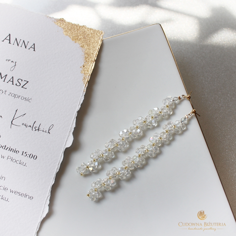 Długie kolczyki ślubne Crystal AB plus złoto kolekcja BELL GOLD IV