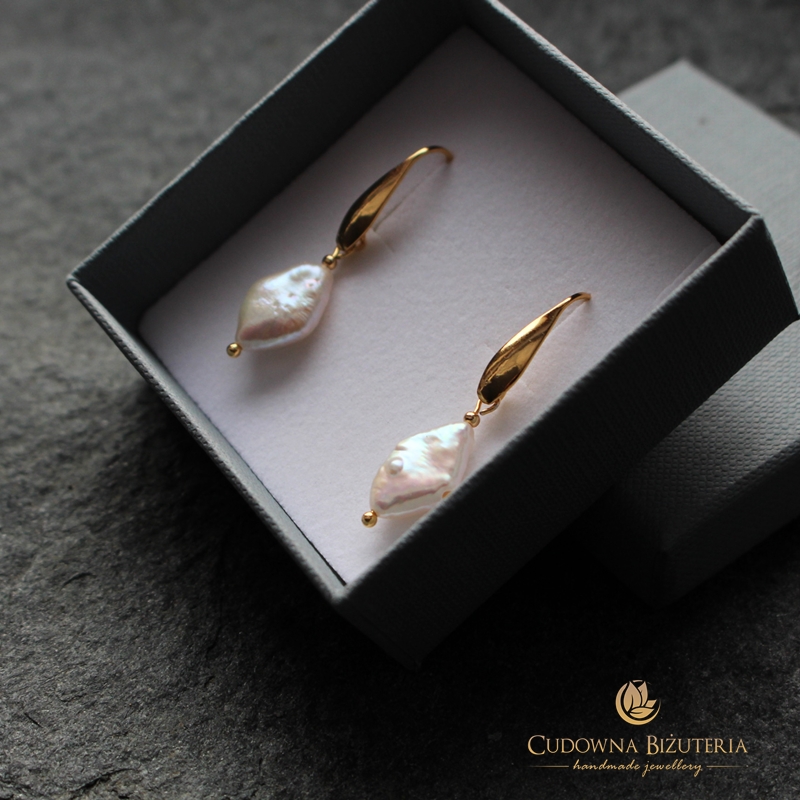 Perełki są w kształcie rombów, wykończone stalą szlachetna w kolorze złotym.