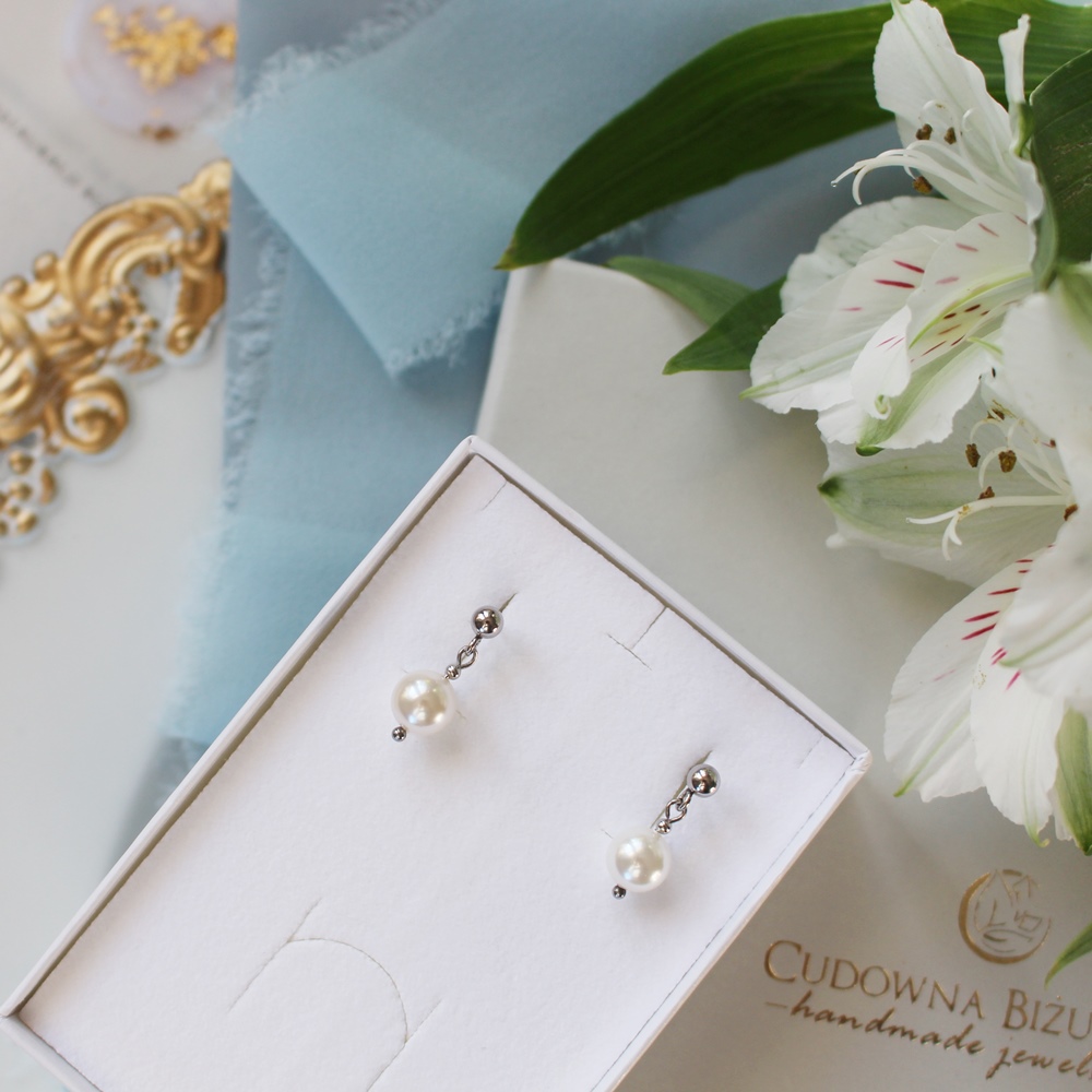 W tej ofercie zamawiasz krótkie kolczyki z jedną perełką. Kolczyki długie na 2 cm.