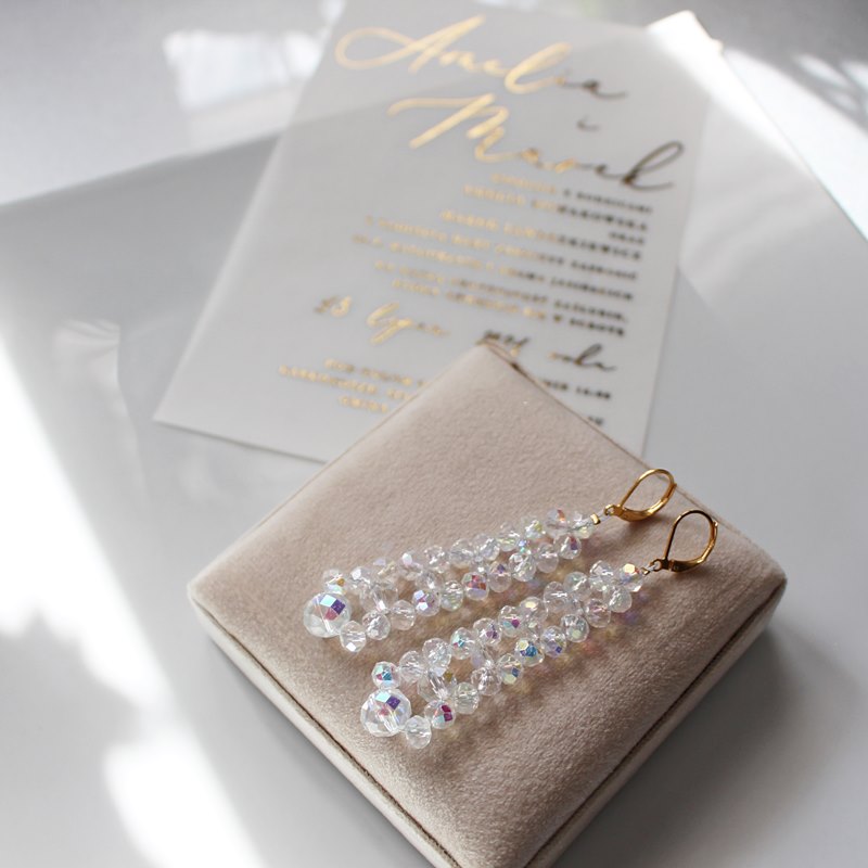 NORA II długie kolczyki w kolorze przezroczystym z mocnym połyskiem tęczy