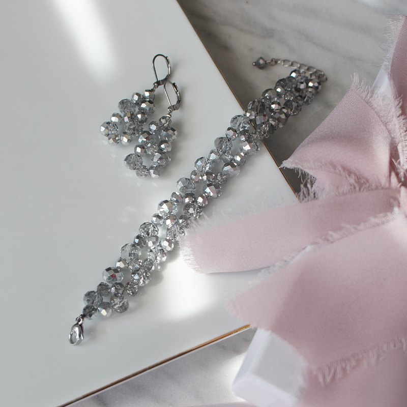 Komplet OLIWIA to elegancki, kuszący ponadczasową prostotą zestaw biżuterii. Modele wykonane są ze szklanych fasetowanych kryształów w rozmiarach 6mm i 8mm. Podstawą biżuterii w tej kolekcji jest linka jubilerska stalowa. Kolekcja cieszy się popularnością wśród klientów ze względu na ciekawy układ kryształów oraz kolor, pasujący do wielu stylizacji.