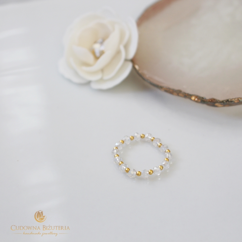 Pierścionek kryształowy Crystal AB i pozłacana stal szlachetna – kolekcja ślubna