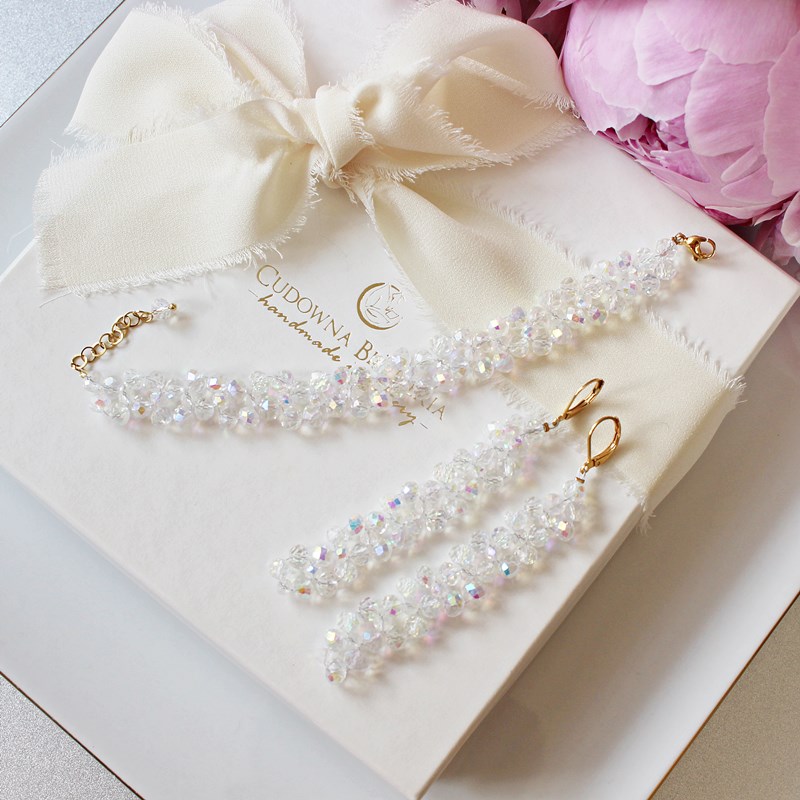 RIO II bransoletka i kolczyki ślubne złote z mocnym tęczowym połyskiem