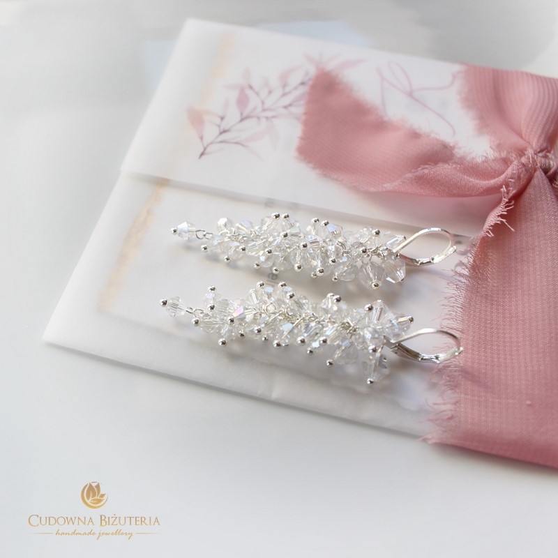 Oferuję kolczyki z kolekcji SARA. Model wykonany z kryształów w kolorze Crystal Ab z wykończeniem w kolorze srebrnym z metalu biżuteryjnego.