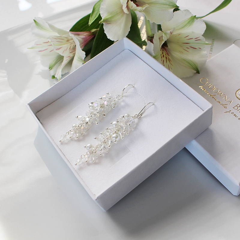 Kolczyki długie na około 6 cm i wykonane z drobnych elementów.