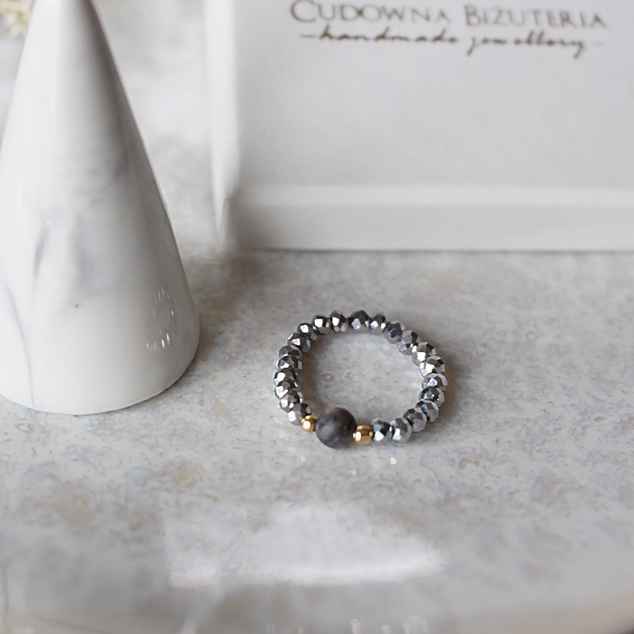 Oferujemy przepiękny pierścionek elastyczny wykonany ze srebrnych kryształów.