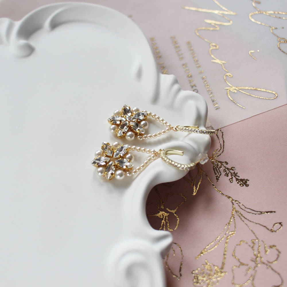Oferuję przepiękny model kolczyków ślubnych stworzony do lekkich, koronkowych sukienek ślubnych.