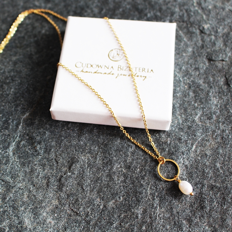 Oferuję delikatny naszyjnik z perełką słodkowodną.