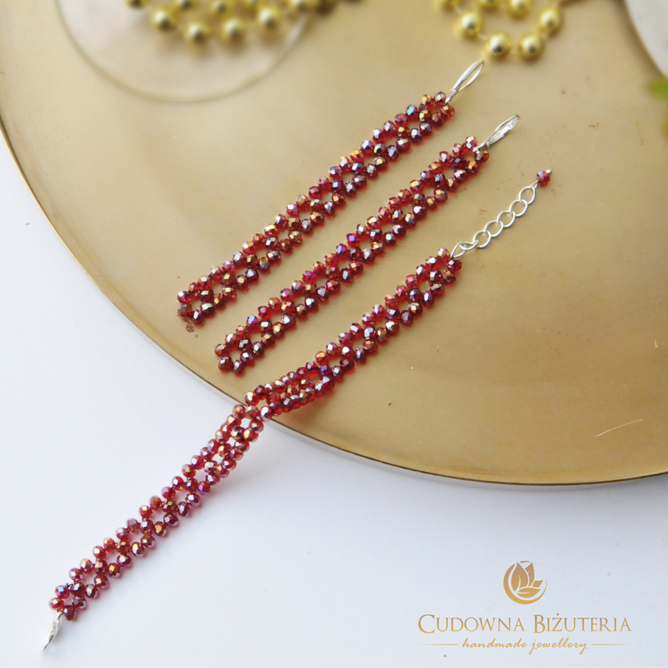 Przedstawiam zjawiskowy i jednocześnie bardzo delikatny komplet biżuterii. Zestaw wykonany ze szklanych fasetowanych kryształów w rozmiarze 4 mm. Podstawą biżuterii w tej kolekcji jest nić jubilerska.