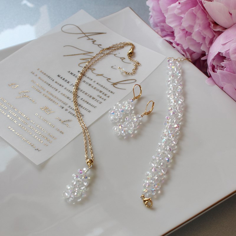 Zestaw biżuterii RIO łańcuszek, bransoletka, kolczyki Crystal Ab z mocnym tęczowym połyskiem