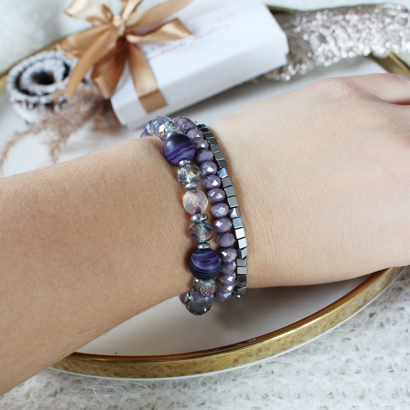 Zestaw bransoletek z kamieniami fioletowego Agatu