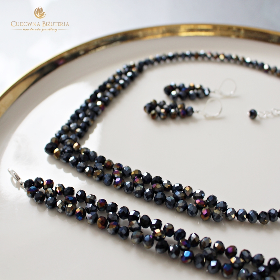 W naszym sklepie znajdziesz wiele zestawów kryształowej, eleganckiej biżuterii. Modele są dostępne w zestawach bransoletka plus kolczyki oraz w kompletach z naszyjnikiem. Poszczególne części zestawu łączy nie tylko ten sam kolor, lecz również układ kamieni tworzących wzór.