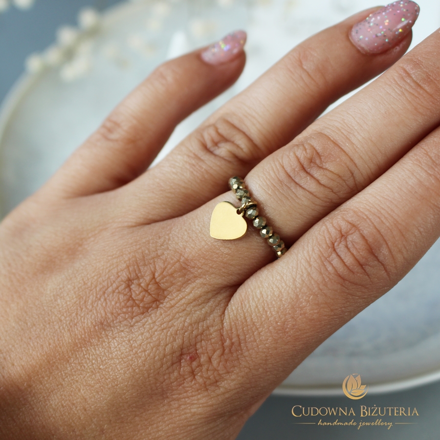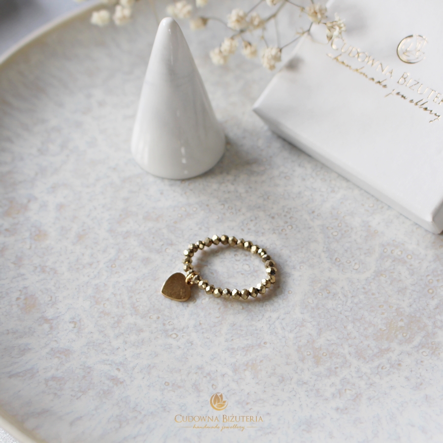 Oferujemy elastyczny pierścionek wykonany ze złotych kryształów.